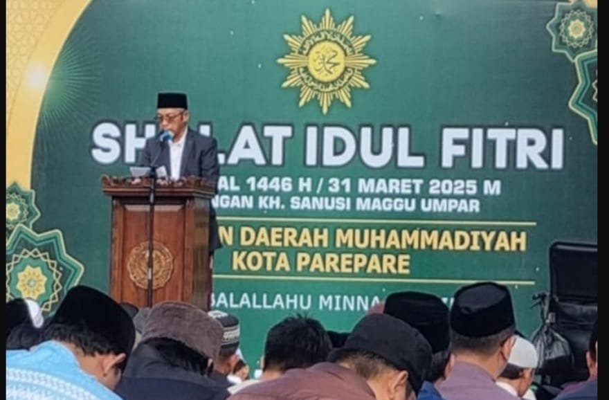 Namun, bukan hanya alunan takbir yang menyentuh kalbu. Seorang lelaki berkacamata, mengenakan jas biru bermotif kotak dan kopiah hitam berdiri di mimbar kayu sederhana. Dialah Prof. Dr. Budu, Ph.D, Sp.M(K), M.MedEd, Wakil Ketua Pimpinan Wilayah Muhammadiyah Sulawesi Selatan. Dengan suaranya yang tenang namun dalam, ia memulai khutbah bertema “Mengabadikan Amalan Ramadhan”—sebuah renungan panjang yang menyayat kesadaran kolektif umat.