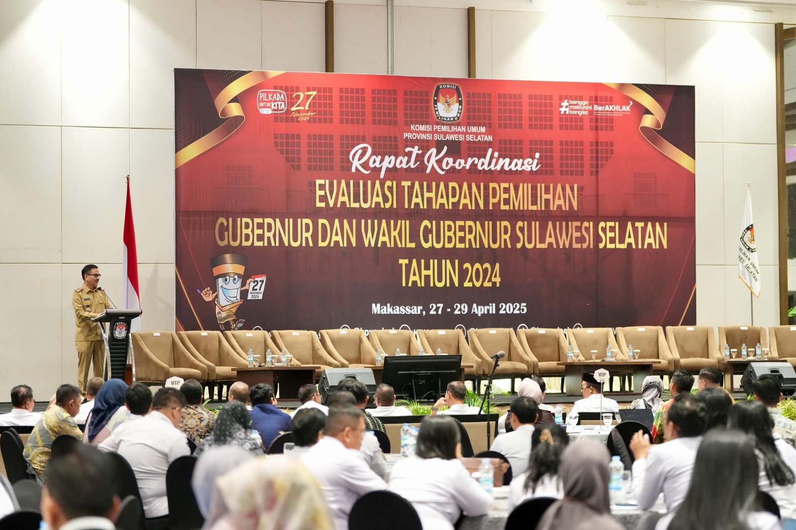 Hal itu diungkapkan oleh Sekretaris Daerah Provinsi Sulawesi Selatan, Jufri Rahman, saat membacakan Sambutan Gubernur Sulsel pada Rapat Koordinasi Evaluasi Tahapan Pemilihan Gubernur dan Wakil Gubernur Sulsel Tahun 2024 di Hotel Claro, Senin, 28 April 2025.