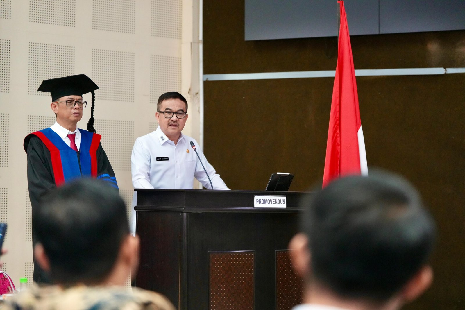 TEBARAN.COM,MAKASSAR – Sekretaris Daerah Provinsi Sulawesi Selatan, Dr. Jufri Rahman, M.Si, menyampaikan apresiasi dan ucapan selamat atas keberhasilan promosi doktor Dr. Ismu Iskandar, S.T., M.M., dalam bidang Ilmu Administrasi Publik di Pascasarjana Universitas Negeri Makassar (UNM), Rabu, 30 Juli 2025.