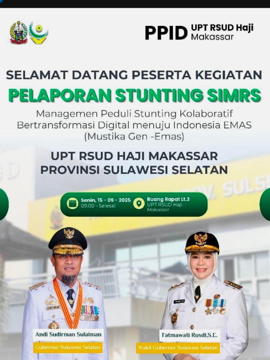 TEBARAN. COM, MAKASSAR –UPT RSUD Haji Makassar mulai mengimplementasikan sistem pelaporan stunting berbasis digital melalui Sistem Informasi Manajemen Rumah Sakit (SIMRS).