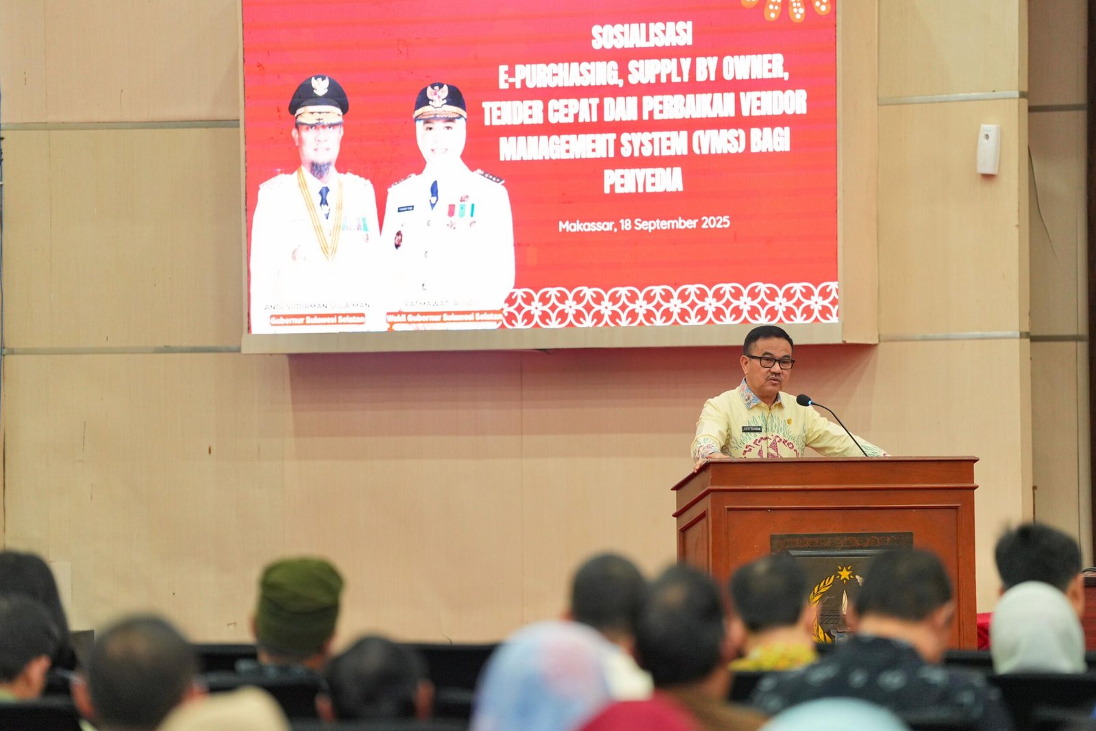 TEBARAN.COM,MAKASSAR – Sekretaris Daerah Provinsi Sulawesi Selatan, Jufri Rahman, secara resmi membuka Sosialisasi E-Purchasing, Supply by Owner, Tender Cepat, dan perbaikan Vendor Management System (VMS) bagi penyedia yang dilaksanakan di Ruang Pola Kantor Gubernur Sulsel, Kamis, 18 September 2025.