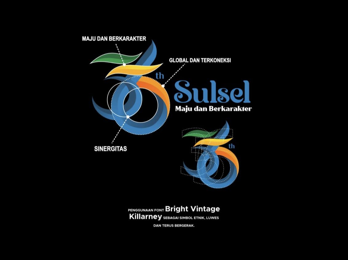 Elemen angka 3 dan 5 divisualkan menyerupai gelombang laut, simbol pelaut ulung Sulsel. Warna hijau dan kuning melambangkan kesejahteraan dan keteguhan karakter.