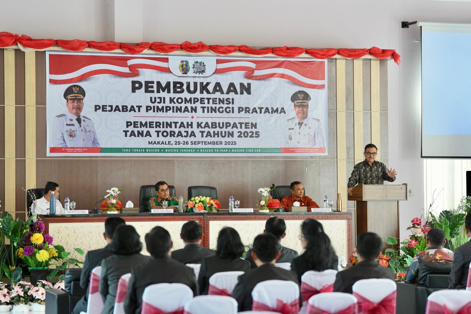 Pembukaan Uji Kompetensi yang dibuka oleh Bupati Tana Toraja Zadrak Tombeg berlangsung di Aula Hotel Grand Metro Permai, Tana Toraja, 25-26 September 2025.