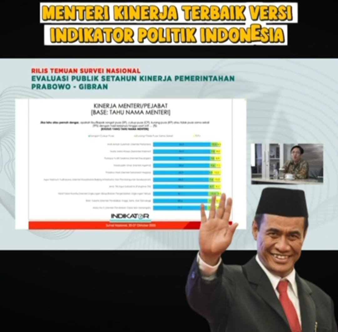 TEBARAN. COM, JAKARTA –Indikator Politik Indonesia yang dipimpin oleh Prof. Burhanuddin Muhtadi mempublikasikan hasil survei atas tingkat kepuasan publik terhadap sejumlah pejabat tinggi negara setelah satu tahun pemerintahan Prabowo Subianto–Gibran Rakabuming Raka.