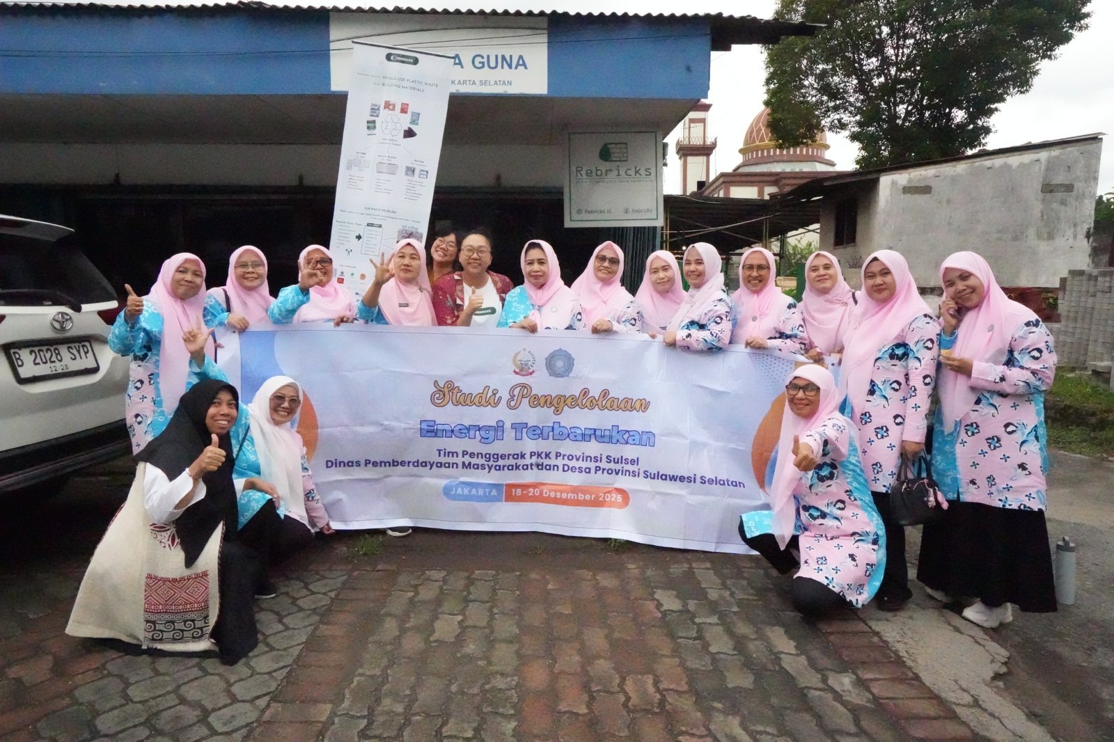 TEBARAN. COM, JAKARTA — 18 Desember 2025, Pengurus Tim Penggerak Pemberdayaan dan Kesejahteraan Keluarga (TP PKK) Provinsi Sulawesi Selatan melakukan kunjungan studi tiru ke Rebricks Indonesia yang berlokasi di Jalan Ciputat Raya, Jakarta Selatan, dalam rangka mempelajari pengelolaan limbah plastik berbasis energi terbarukan yang menghasilkan produk bernilai ekonomi.