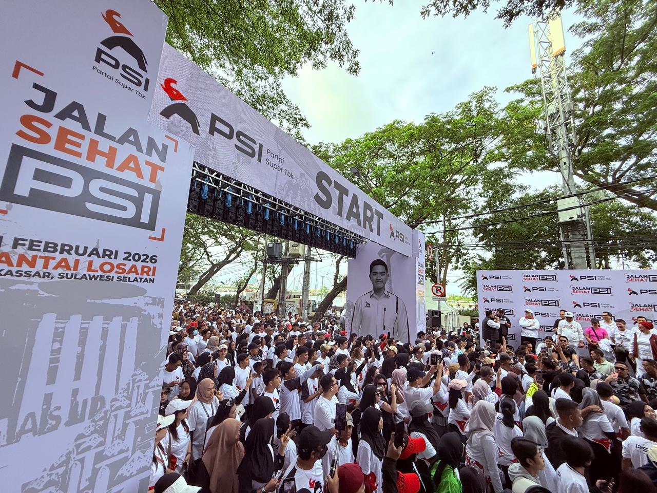 Kegiatan jalan sehat yang mengusung semangat “Partai Super Terbuka” ini secara resmi dilepas oleh Kaesang dan Erina, didampingi Ketua PSI Sulawesi Selatan Muammar Ferirae Gandi, Bendahara Umum PSI Fenti Novirita, serta Rusdi Masse (RMS) yang baru saja bergabung dengan PSI.