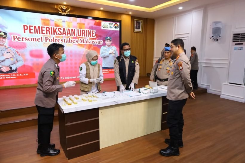 Tes urine dilakukan secara mendadak dengan pengawasan langsung dari Sipropam Polrestabes Makassar sebagai bentuk pencegahan penyalahgunaan narkotika di lingkungan kepolisian.