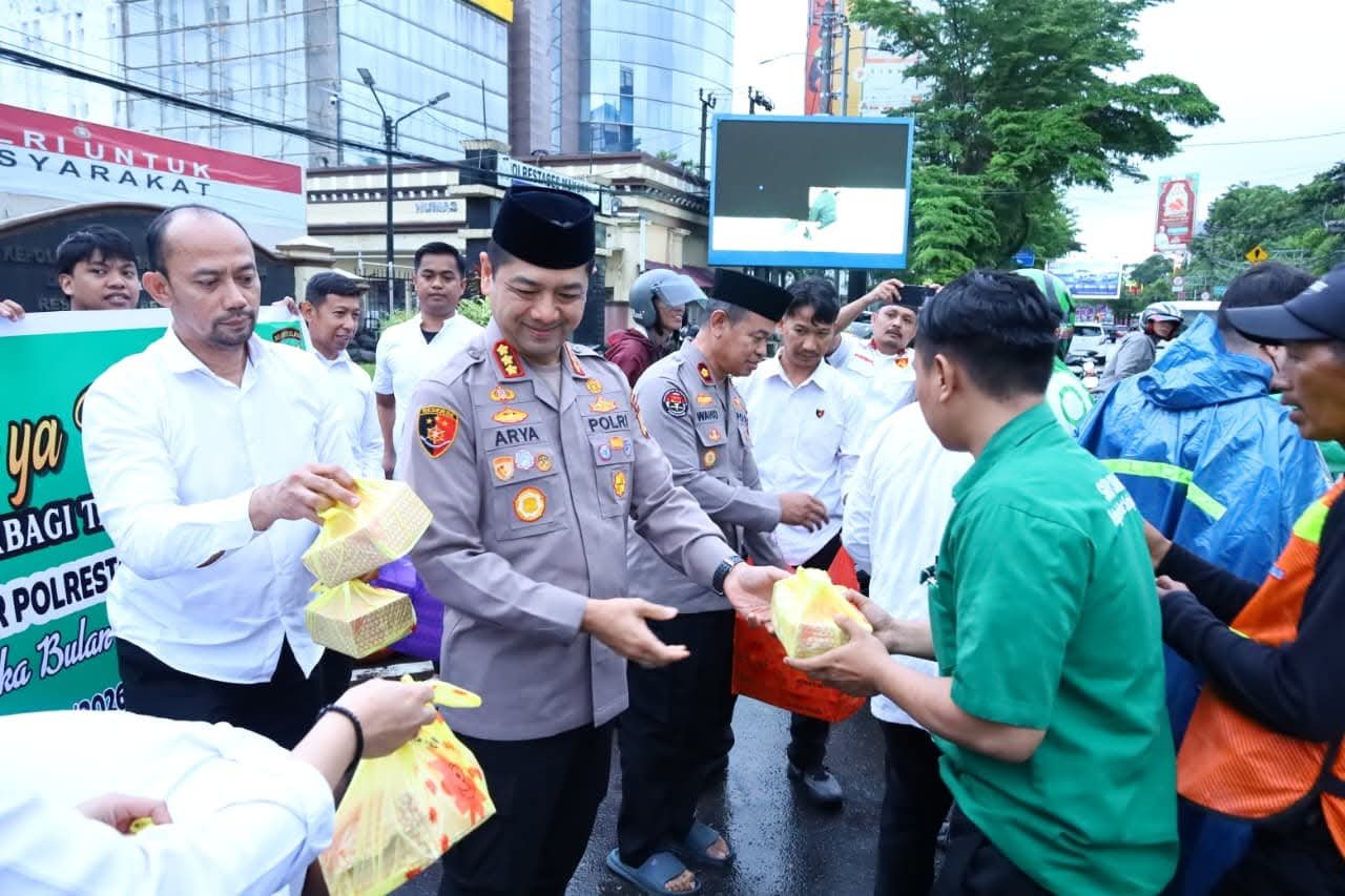 TEBARAN.COM,MAKASSAR – Semangat berbagi di bulan suci Ramadan 1447 Hijriah ditunjukkan oleh Polrestabes Makassar dengan membagikan ratusan paket takjil kepada masyarakat yang melintas di depan Mapolrestabes Makassar, Jalan Ahmad Yani, Kota Makassar, Senin (23/2/2026).