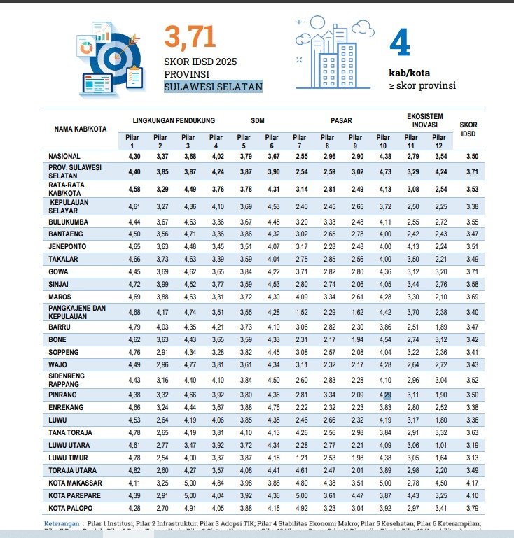 Hasil ini menunjukkanposisi Makassar sebagai daerah dengan performa daya saing yang kuat di tingkat nasional.