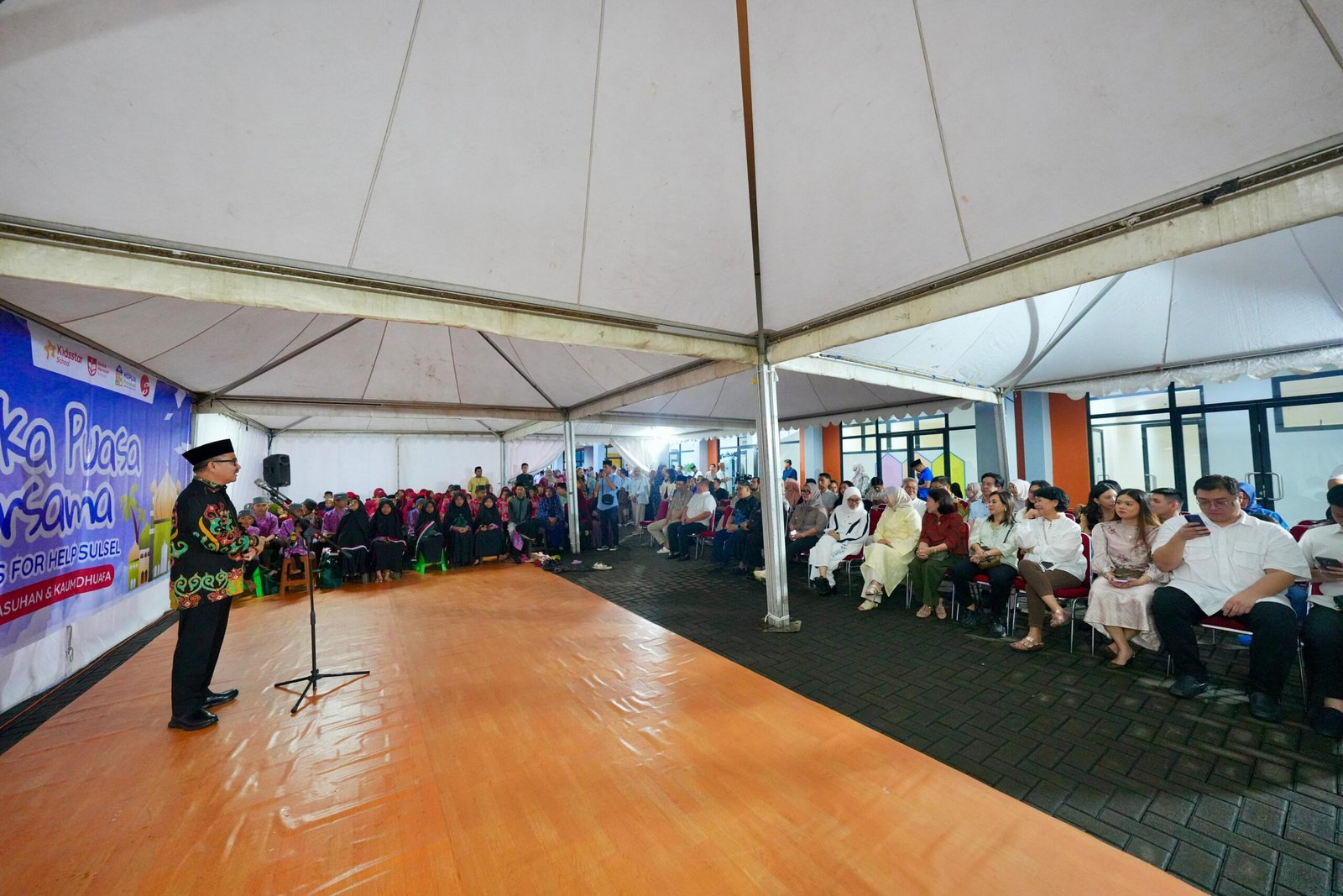 Sekretaris Daerah Provinsi Sulawesi Selatan, Jufri Rahman, didampingi Ketua Dharma Wanita Persatuan (DWP) Sulsel Melani Simon Jufri, menghadiri langsung kegiatan tersebut yang juga menghadirkan puluhan anak panti asuhan serta kaum dhuafa dalam suasana kebersamaan Ramadan.