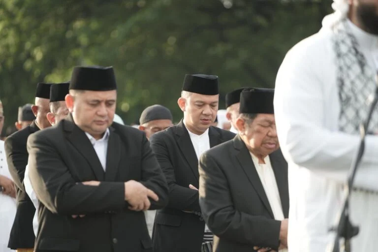 TEBARAN.COM,MAKASSAR – Pagi yang teduh di Lapangan Karebosi menjadi saksi hangatnya kebersamaan, Wali Kota Makassar Munafri Arifuddin dan Wakil Wali Kota Makassar Aliyah Mustika Ilham melaksanakan Salat Id bersama ribuan warga di hari kemenangan Idulfitri.