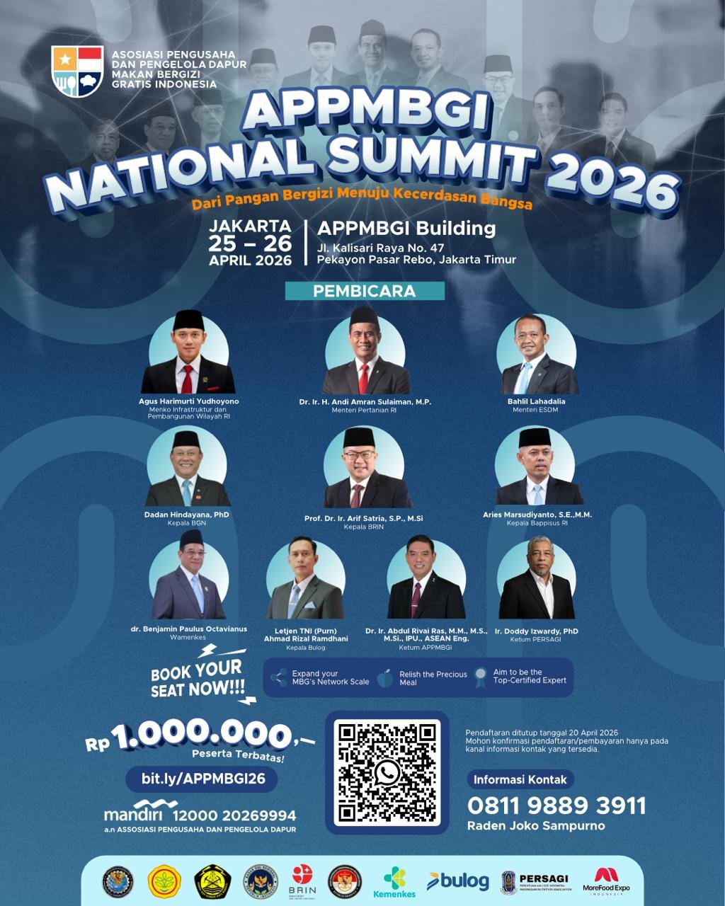 TEBARAN.COM,JAKARTA – Asosiasi Pengusaha Pemasok Makan Bergizi Gratis Indonesia (APPMBGI) akan menyelenggarakan agenda strategis berskala nasional, APPMBGI National Summit 2026. Pertemuan besar ini dijadwalkan berlangsung di Jakarta pada 25–26 April 2026.