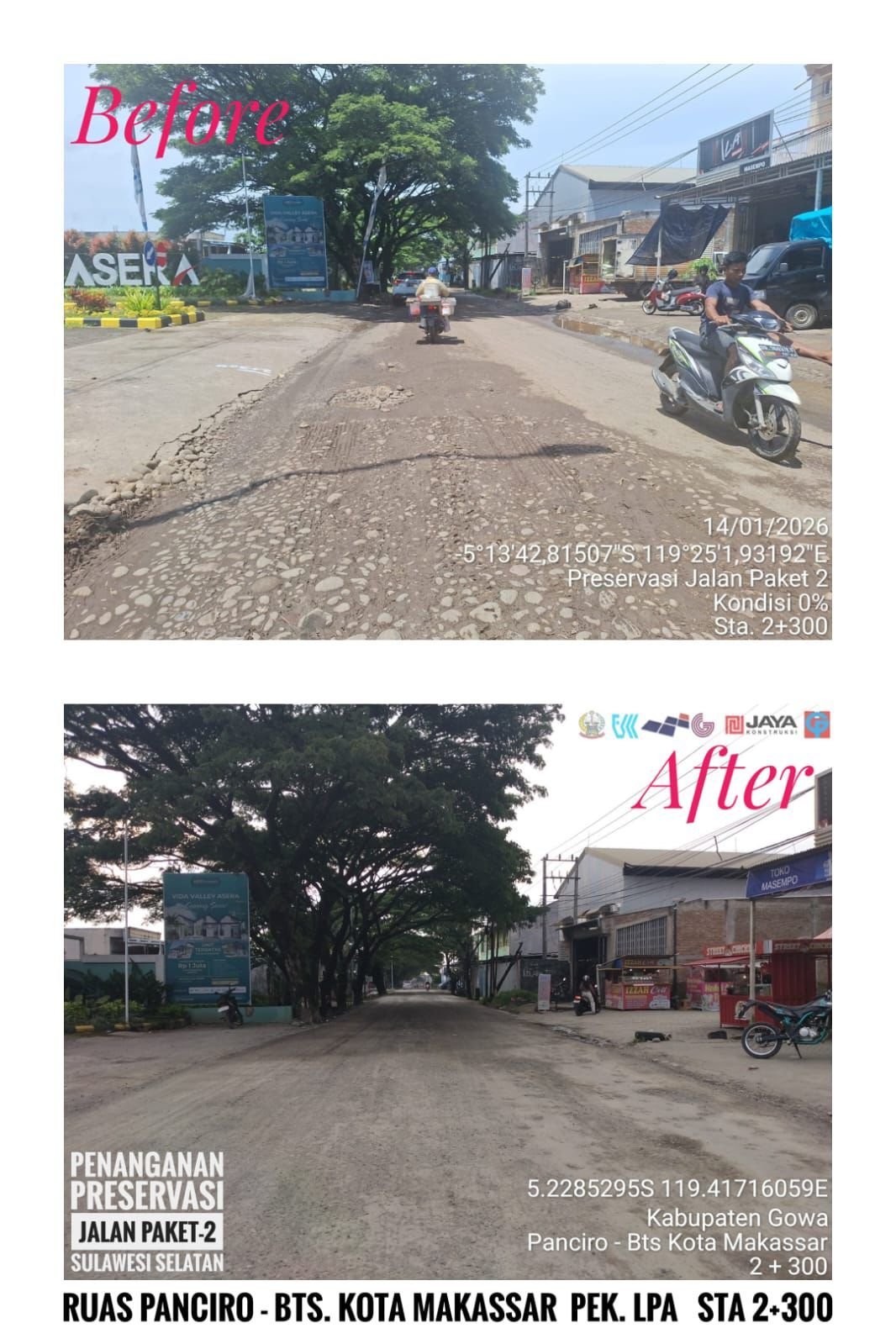 Kepala Bidang Jalan Dinas Bina Marga dan Bina Konstruksi Sulsel, Muhammad Rosyadi, mengatakan bahwa pekerjaan terus berjalan sesuai tahapan yang telah direncanakan.