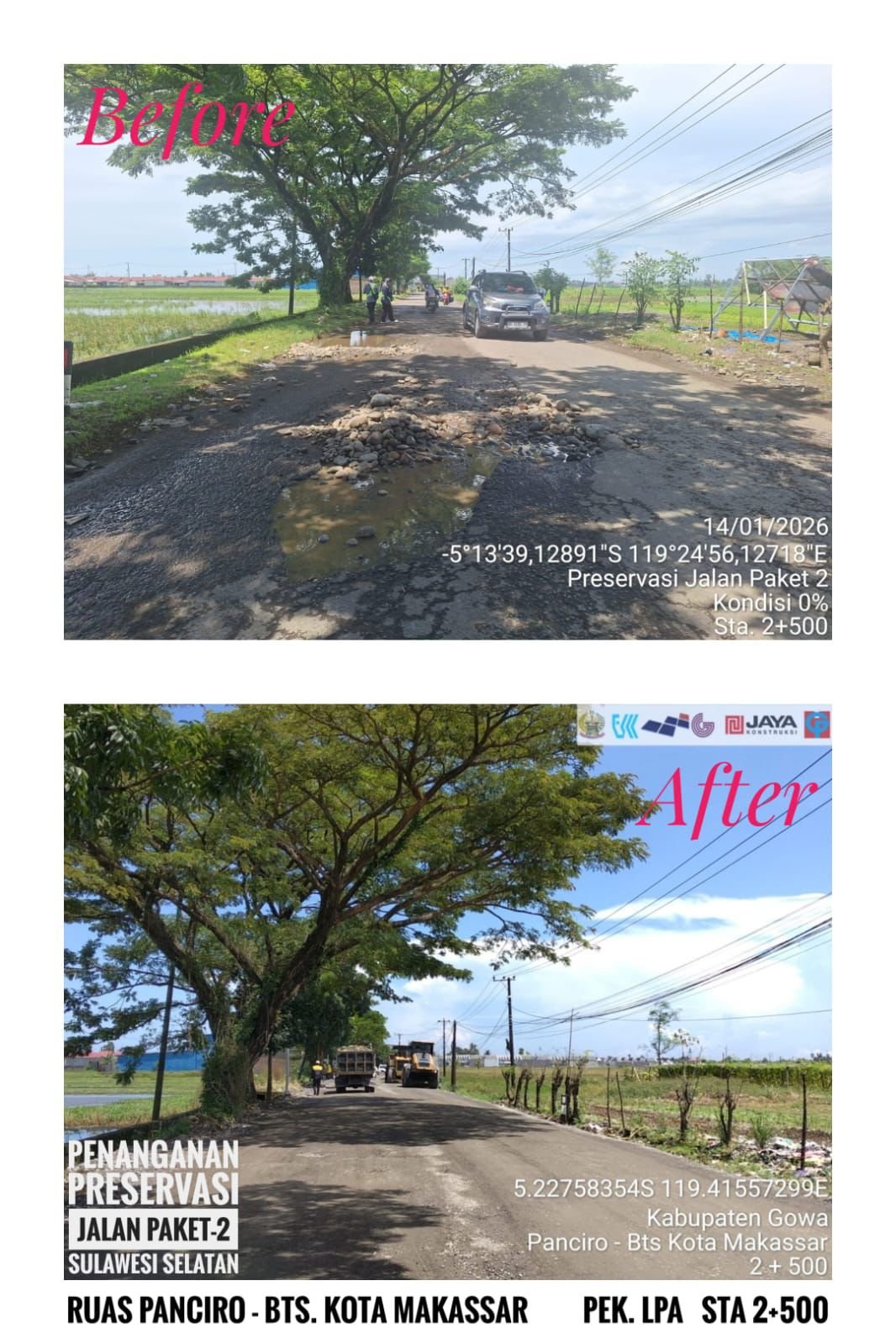Sementara itu, pada ruas Batas Gowa–Tondong tengah dilakukan pekerjaan overlay AC-BC atau pelapisan ulang aspal guna meningkatkan kualitas permukaan jalan.