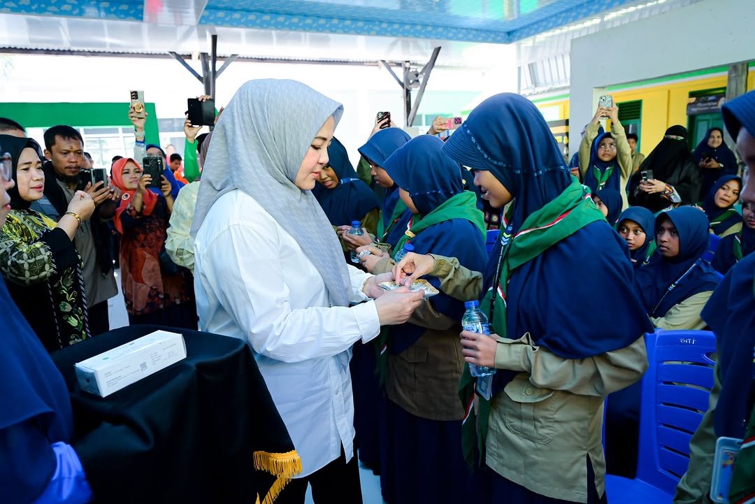 Dalam kesempatan tersebut, ia menyerahkan vitamin penambah darah kepada para siswi sebagai bagian dari langkah promotif dan preventif.