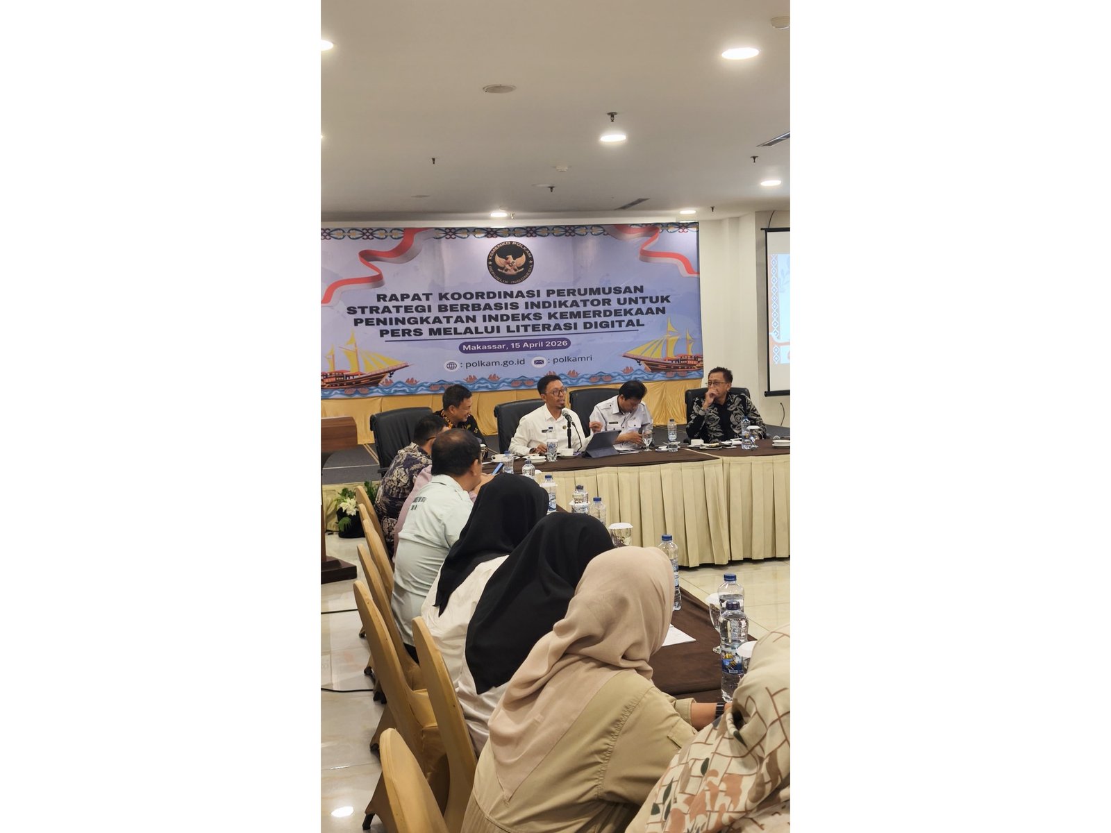 Pernyataan tersebut disampaikan dalam rapat koordinasi perumusan strategi berbasis indikator untuk peningkatan indeks kemerdekaan pers melalui literasi digital, Rabu, 15 April 2026 di Claro Hotel, Makassar.