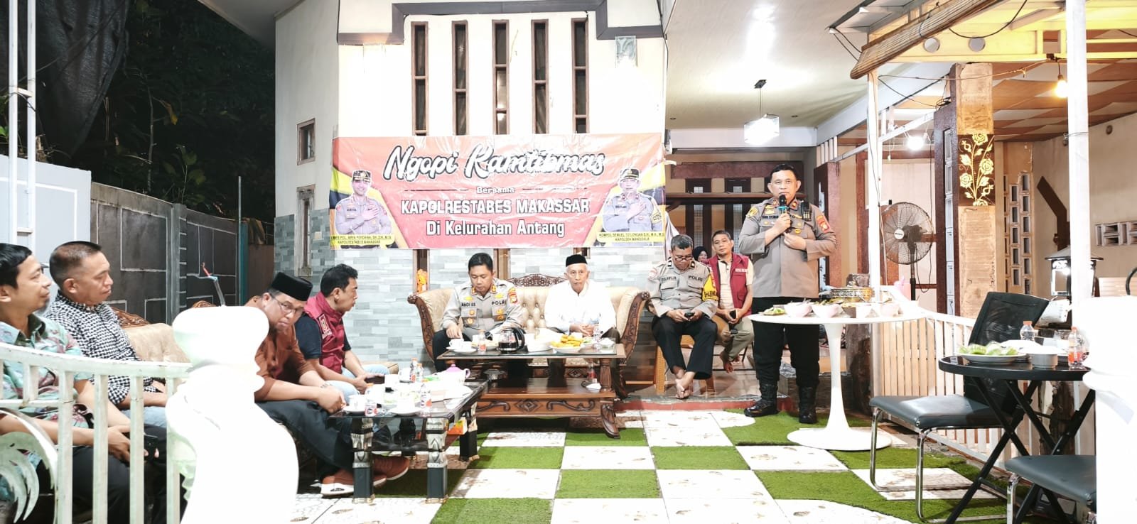 TEBARAN.COM,MAKASSAR — Suasana hangat penuh keakraban mewarnai kegiatan “Ngopi Kamtibmas dan Silaturahmi” yang digelar di Jl. Moha Lasuloro No. 19, Kelurahan Antang, Kecamatan Manggala, Kamis malam (23/4/2026) pukul 20.30 WITA. Kegiatan ini dipimpin langsung oleh Wakapolrestabes Makassar, AKBP Andi Erma Suryono, S.H., S.I.K., M.M, bersama jajaran dan dihadiri sekitar 70 warga.