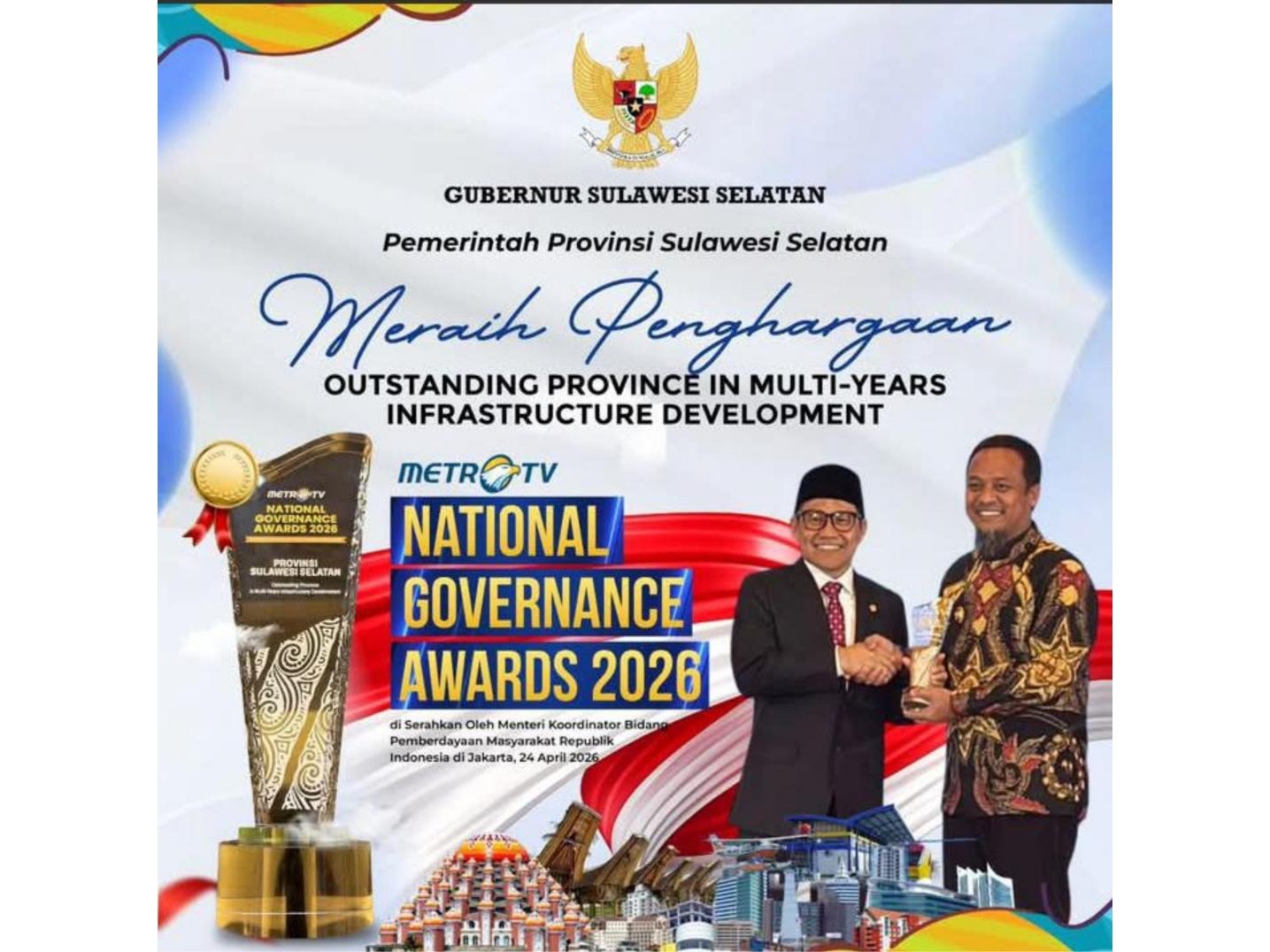 Sekadar diketahui, penghargaan yang diraih Pemprov Sulsel tidak terlepas dari keberhasilan program infrastruktur melalui skema Multiyears Project (MYP) 2025-2027 senilai Rp3,7 Triliun yang digagas di bawah kepemimpinan Andi Sudirman Sulaiman bersama Wakil Gubernur, Fatmawati Rusdi.