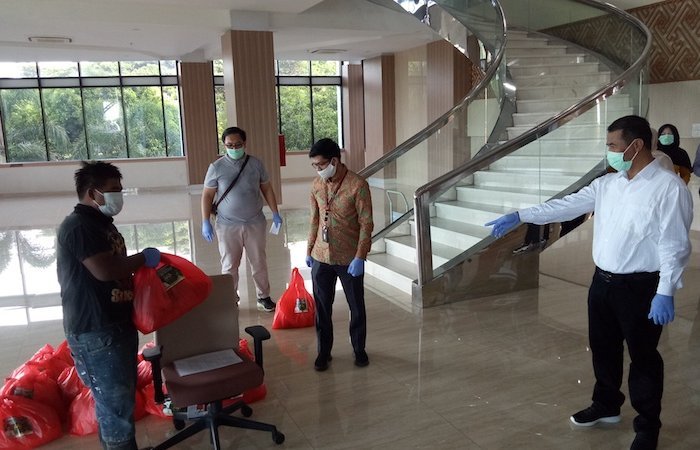 Bantuan diserahkan langsung oleh Amran Sulaiman secara simbolis kepada perwakilan penggali makam di Gedung AAS, Makassar, Kamis (21/5/2020).