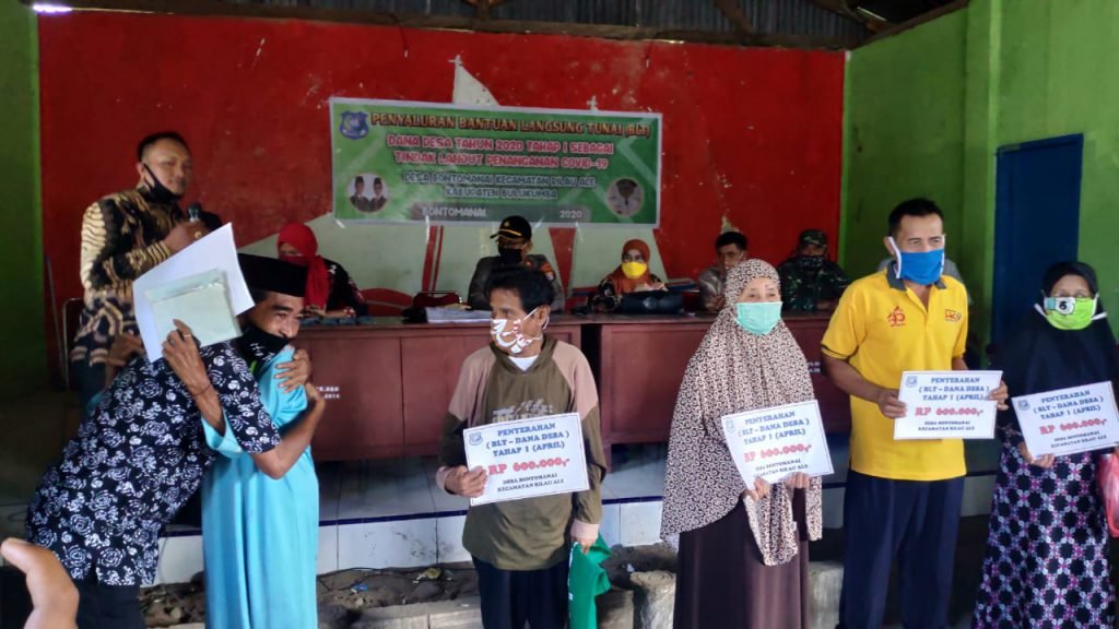 RAGAM.ID, BULUKUMBA – Pemerintah Desa (Pemdes) Bontomanai, Kecamatan Rilau Ale, Bulukumba menyalurkan Bantuan Langsung Tunai (BLT) Dana Desa (DD) ke warga terdampak Covid-19 di Aula Kantor Desa Bontomanai, Kamis (28/5/2020).