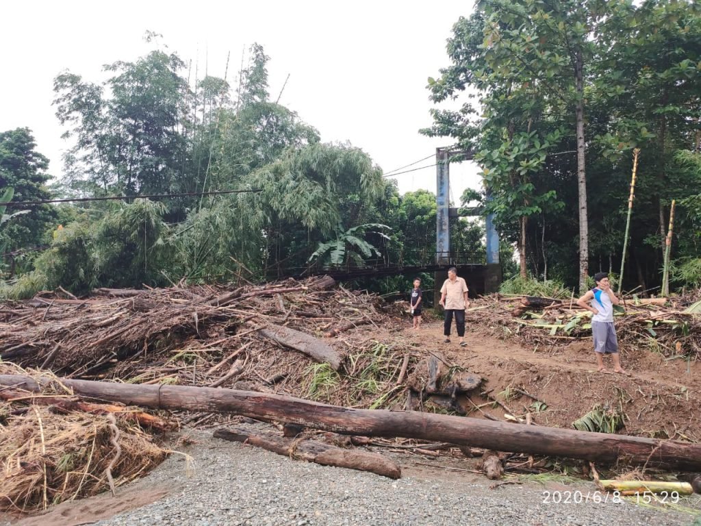 Jembatan yang rusak itu merupakan penghubung antara Dusun 1 dengan Dusun 4. Saat ini banjir di wilayah itu perlahan mulai surut.