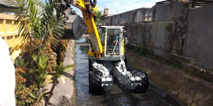 RAGAM.ID, MAKASSAR – Dinas Pekerjaan Umum (PU) Kota Makassar melakukan uji coba excavator-spider di Jalan Cendrawasih, Selasa (30/6/2020).