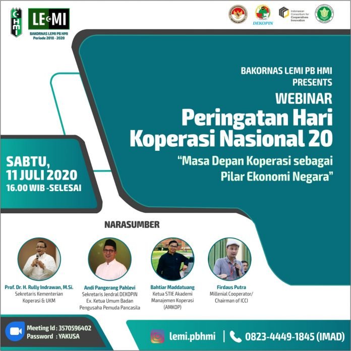 RAGAM.ID, JAKARTA – Kementerian Koperasi (Kemenkop) dan UMK RI Bersama Lembaga Ekonomi Mahasiswa Islam (LEMI) PB HMI akan menggelar webinar nasional yang bertajuk: “ Masa Depan Koperasi sebagai pilar ekonomi negara”.