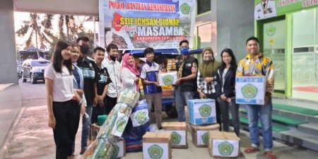Bantuan itu dikumpulkan oleh Mahasiswa STIE ICHSAN Sidrap selama melakukan aksi peduli Masamba yang dipusatkan di STIE ICHSAN Sidrap.