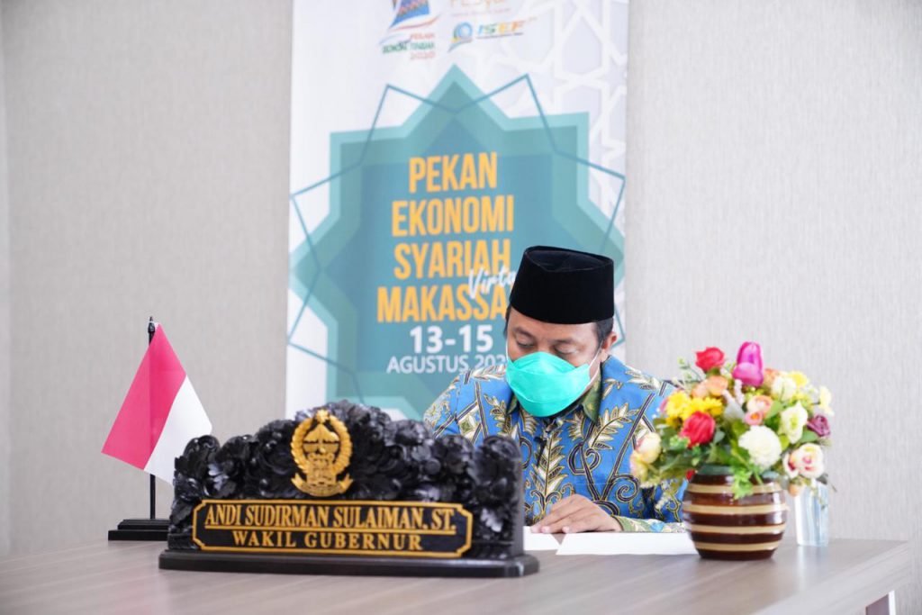 Wagub Andi Sudirman Sulaiman turut hadir dalam pembukaan pekan ekonomi syariah melalui virtual dari Kantor Gubernur Sulsel.