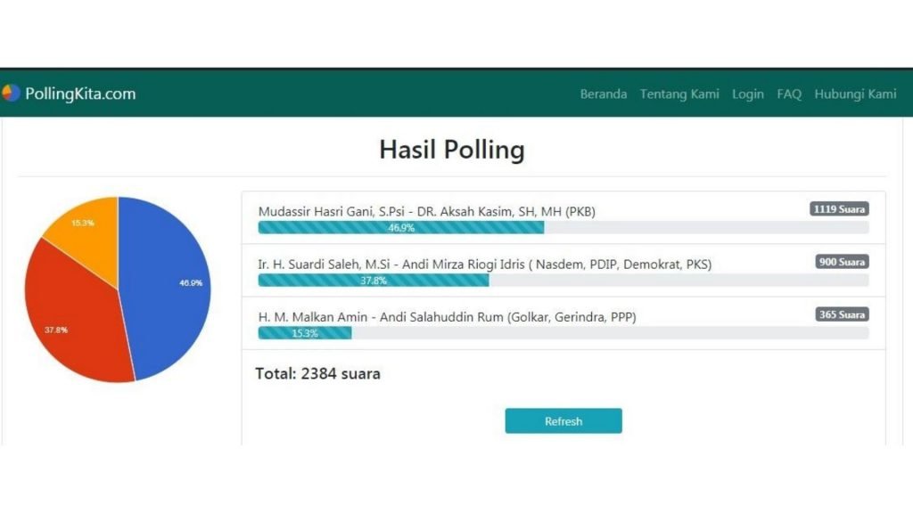 Polling yang berlangsung sejak 18 Agustus 2020 dan masih terbuka hingga saat ini (Rabu, 21/8) dan telah berhasil mengumpulkan sebanyak 2375 suara.
