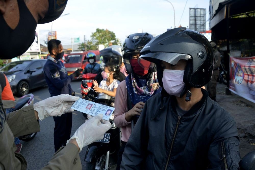 Setiap warga yang melintas akan diperiksa suhu tubuhnya hingga kelengkapan pelindung diri yang digunakan, seperti masker hingga kelengkapan administrasi. Pelintas diharuskan menyertakan surat keterangan (suket) bebas COVID-19 sebagai persyaratan sesuai yang tertuang dalam Perwali Nomor 36 Tahun 2020.