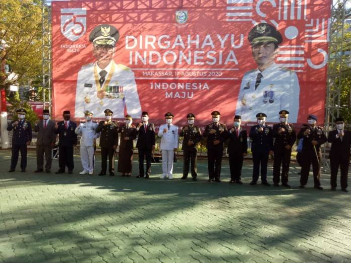 RAGAM.ID, MAKASSAR – Pemerintah Kota Makassar menggelar Upacara Pengibaran Bendera Merah Putih dalam rangka memperingati HUT ke-75 Kemerdekaan Republik Indonesia, di halaman Balaikota Makassar, Senin (17/8/2020).