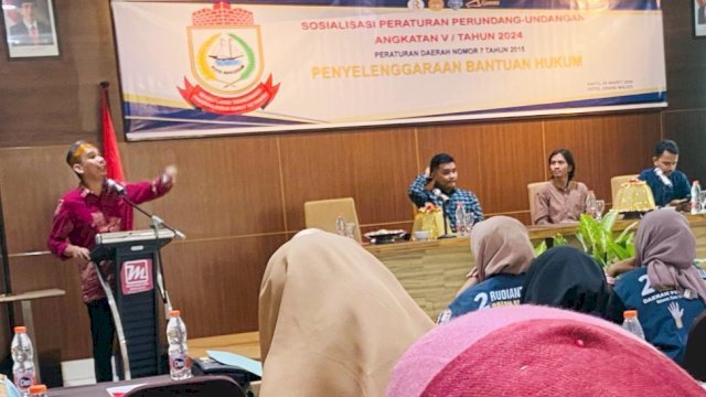 TEBARAN.COM,MAKASSAR – Ketua DPRD Makassar, Rudianto Lallo, menggelar Sosialisasi Penyebarluasan Peraturan Daerah (Perda) Nomor 7 Tahun 2015 tentang Penyelenggaraan Bantuan Hukum, di hotel Grand Maleo Makassar, Sabtu, (9/3/2023).