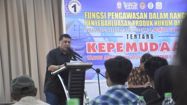 TEBARAN.COM,MAKASSAR – Anggota DPRD Kota Makassar, Arifin Dg Kulle menggelar agenda fungsi pengawasan dalam rangka penyeberluasan peraturan daerah (Perda) Nomor 6 Tahun 2019 tentang Kepemudaan, di Hotel Royal Bay, Selasa (23/1/2024).