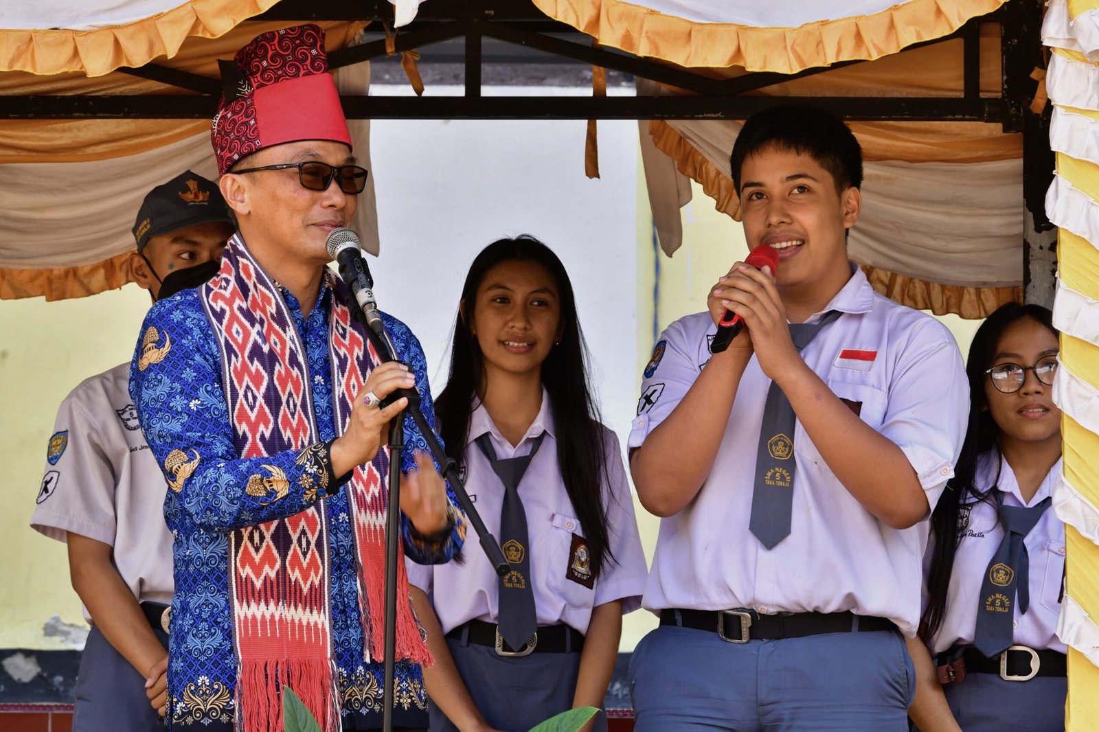 Penjabat Gubernur Prof. Zudan dalam sambutannya menekankan pentingnya belajar dengan giat serta menghormati orang tua dan guru. Serta memberikan kuis dengan hadiah tas.