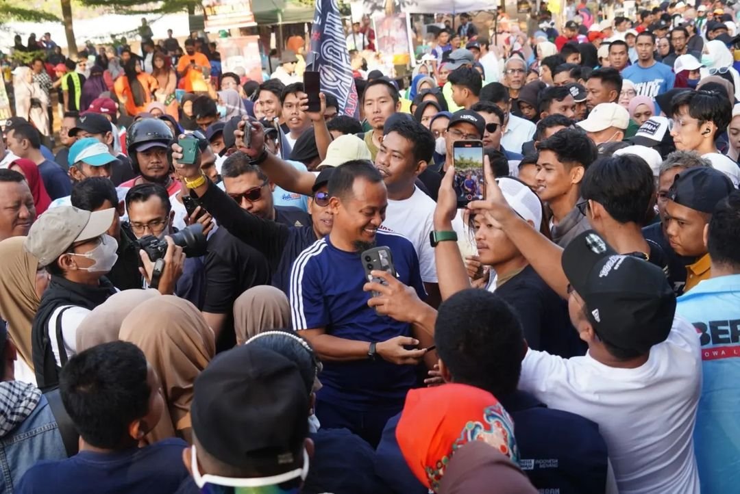 Kehadiran Andi Sudirman ini menghadiri acara jalan sehat Anti Mager yang start di Jalan Tumanurung, Kabupaten Gowa, Minggu 15 September 2024.