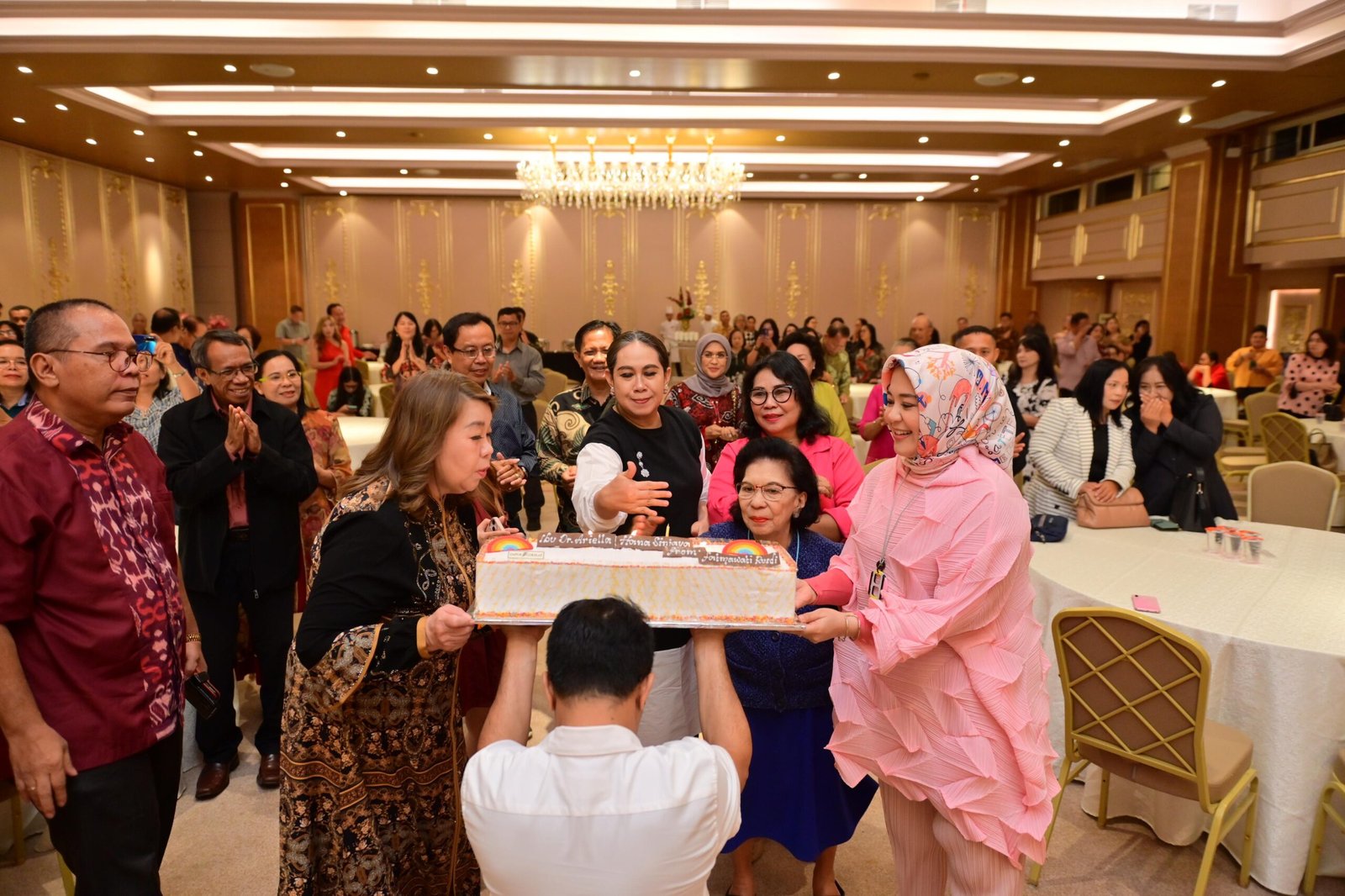 TEBARAN.COM,MAKASSAR – Calon gubernur Sulawesi Selatan (Sulsel) nomor urut 2, Fatmawati Rusdi, berbaur dalam suasana penuh kehangatan saat perayaan ulang tahun Ketua Persatuan Masyarakat Kristen Indonesia Timur (PMKIT) Sulsel, Ariella Hana Sinjaya, di Onyx Ballroom, Hotel Myko, Makassar, Jumat (25/10/2024) malam.