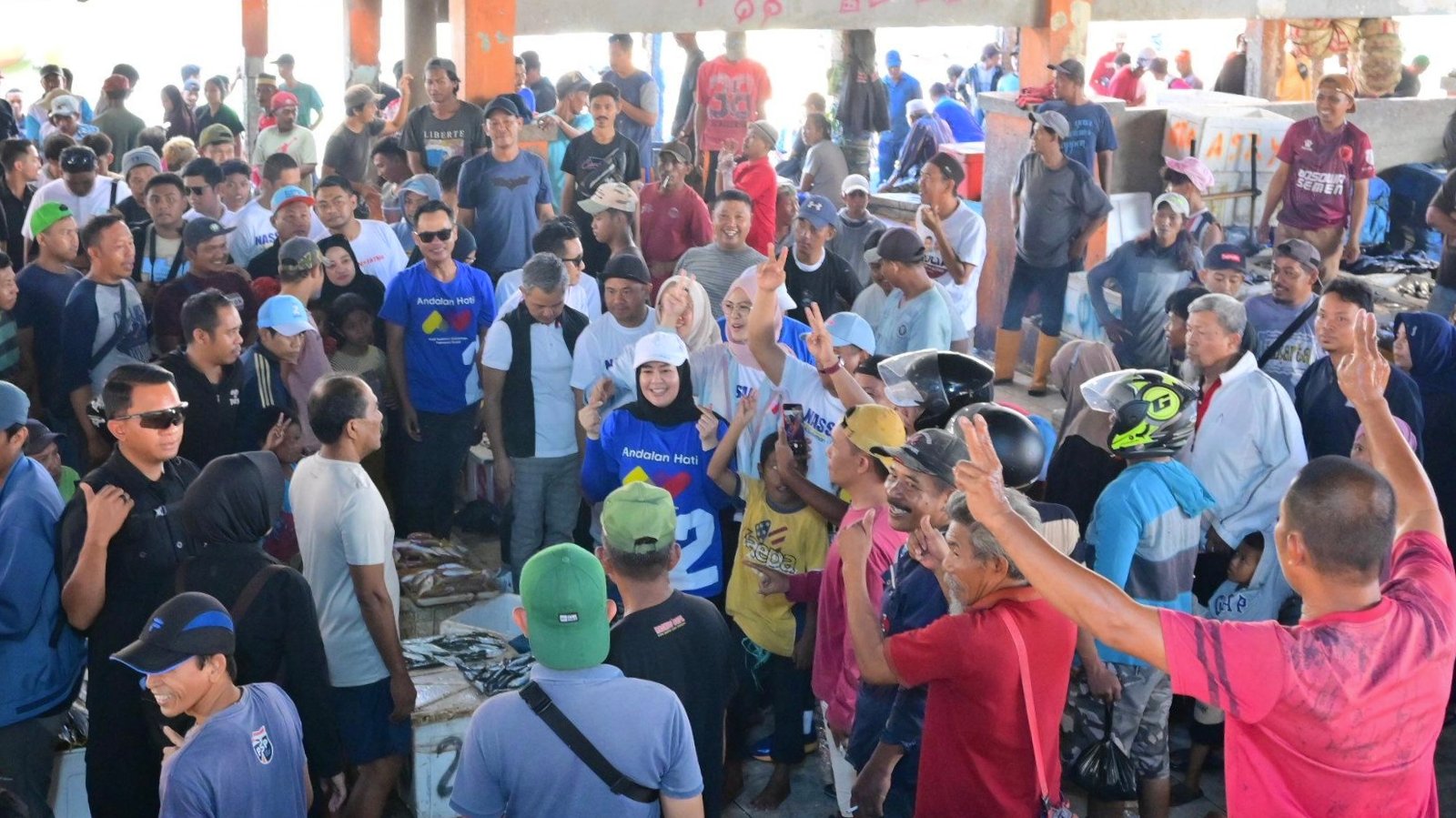 Fatmawati begitu tiba di lokasi menyapa pedagang, nelayan, dan pengunjung dengan ramah. Duet Andi Sudirman Sulaiman pada pemilihan gubernur (Pilgub) Sulsel 2024 ini disambut dengan yel-yel penuh semangat, “Andalan Hati, Andi Sudirman-Fatma!”, “Nomor dua!”, dan “Nassami 02!”.