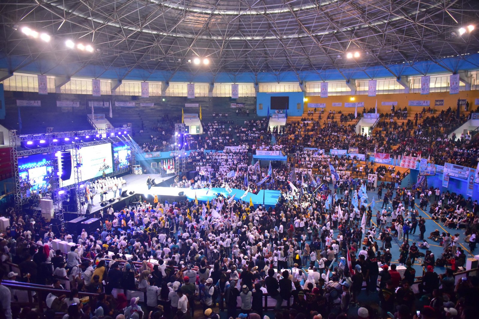 TEBARAN.COM,MAKASSAR –Kampanye akbar pasangan calon gubernur dan wakil gubernur Sulsel nomor urut 2, Andi Sudirman Sulaiman-Fatmawati Rusdi (Andalan Hati), menciptakan lautan manusia di Gelanggang Olahraga (GOR) Sudiang, Kota Makassar, Sabtu (23/11/2024).